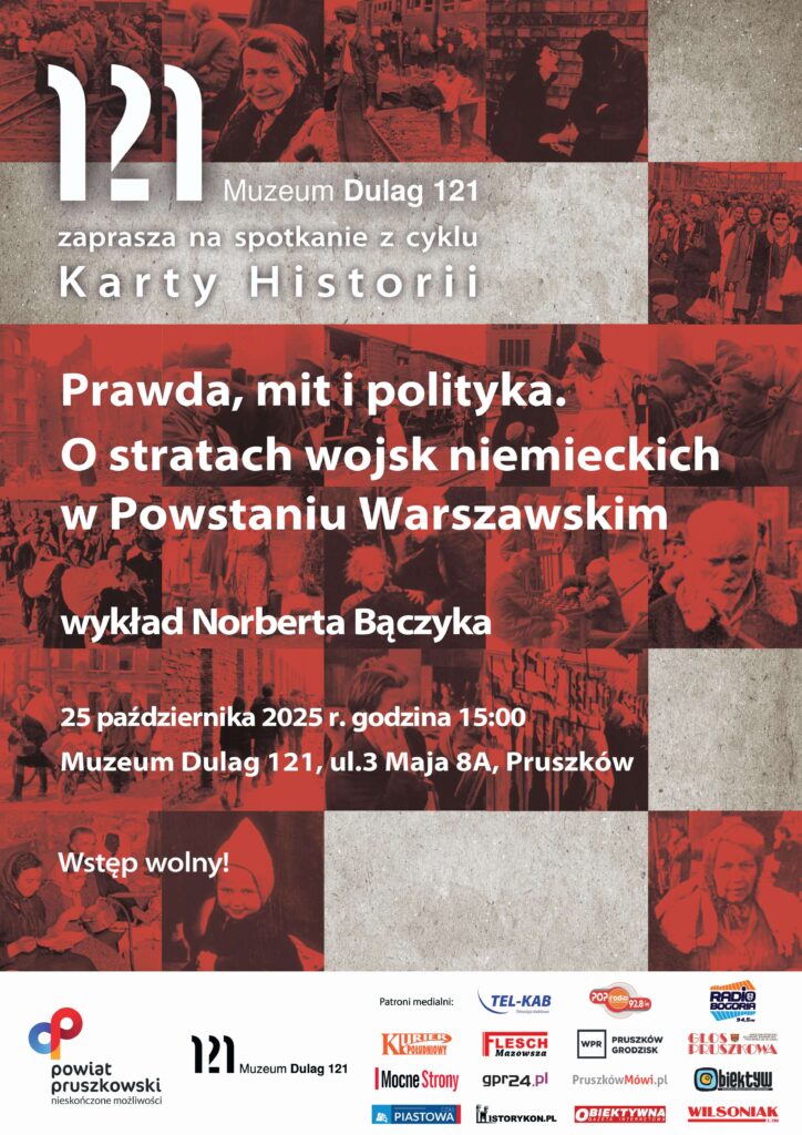 W sobotę, 25 października gościem Muzeum Dulag 121 będzie Norbert Bączyk, ekspert w tematyce Powstania Warszawskiego. Serdecznie zapraszamy o godzinie 15.00 do Muzeum Dulag 121 przy ul. 3 Maja 8A w Pruszkowie.